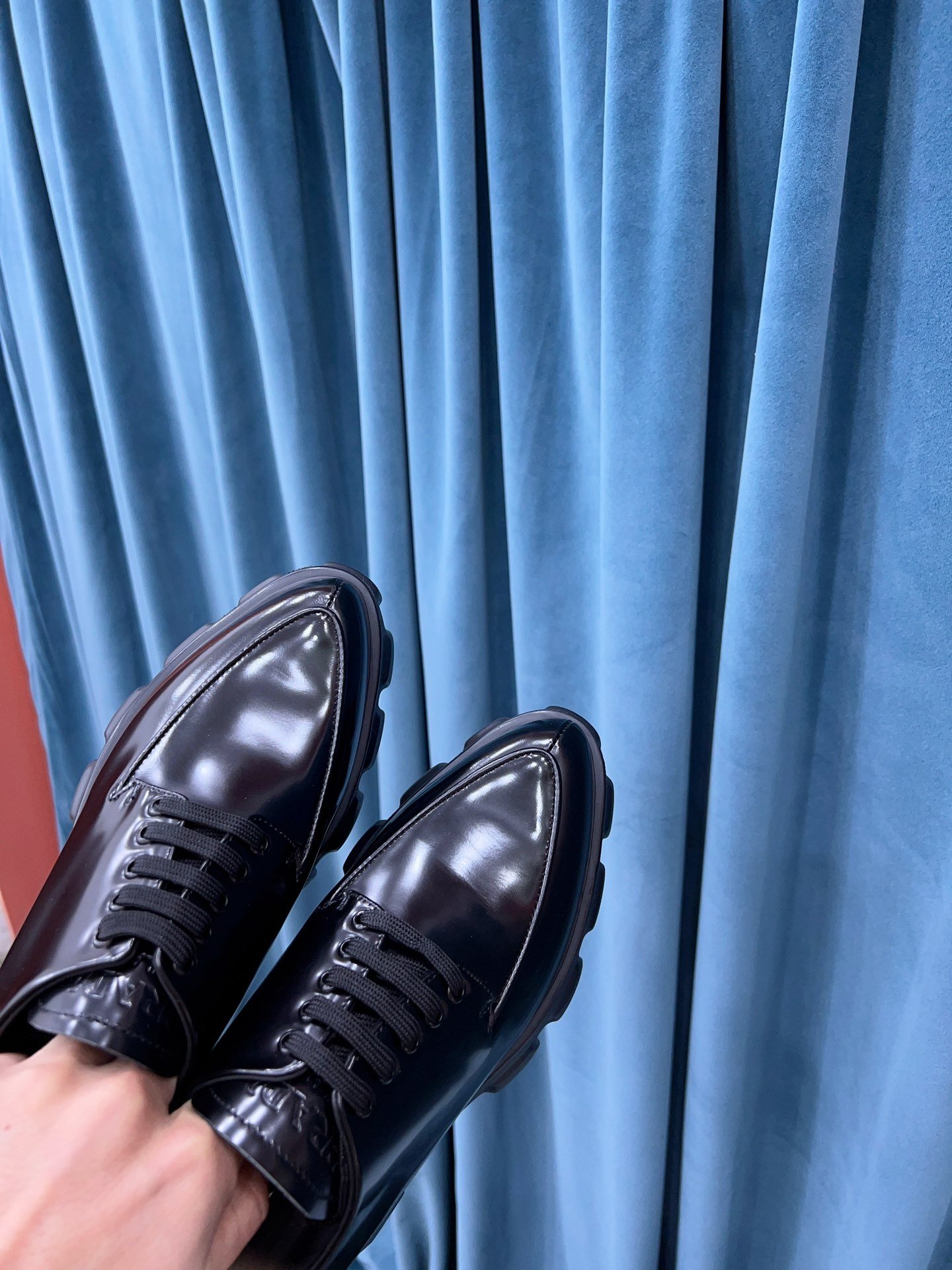 这款鞋以其超大橡胶鞋底命名,是永恒设计的体现,整体而独特研究、创新和风格。这些系带鞋的鞋面灵感源自男士正装鞋履,与受制服启发的鞋底线条形成对话,将保护性和现代主义等概念与品牌标志性的优雅相结合。