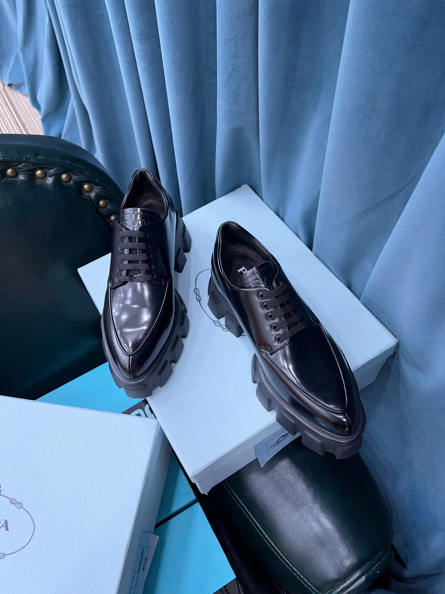 Prada Monolith 女式拉绒系带鞋黑色 2.4 英寸/60 毫米 PRD