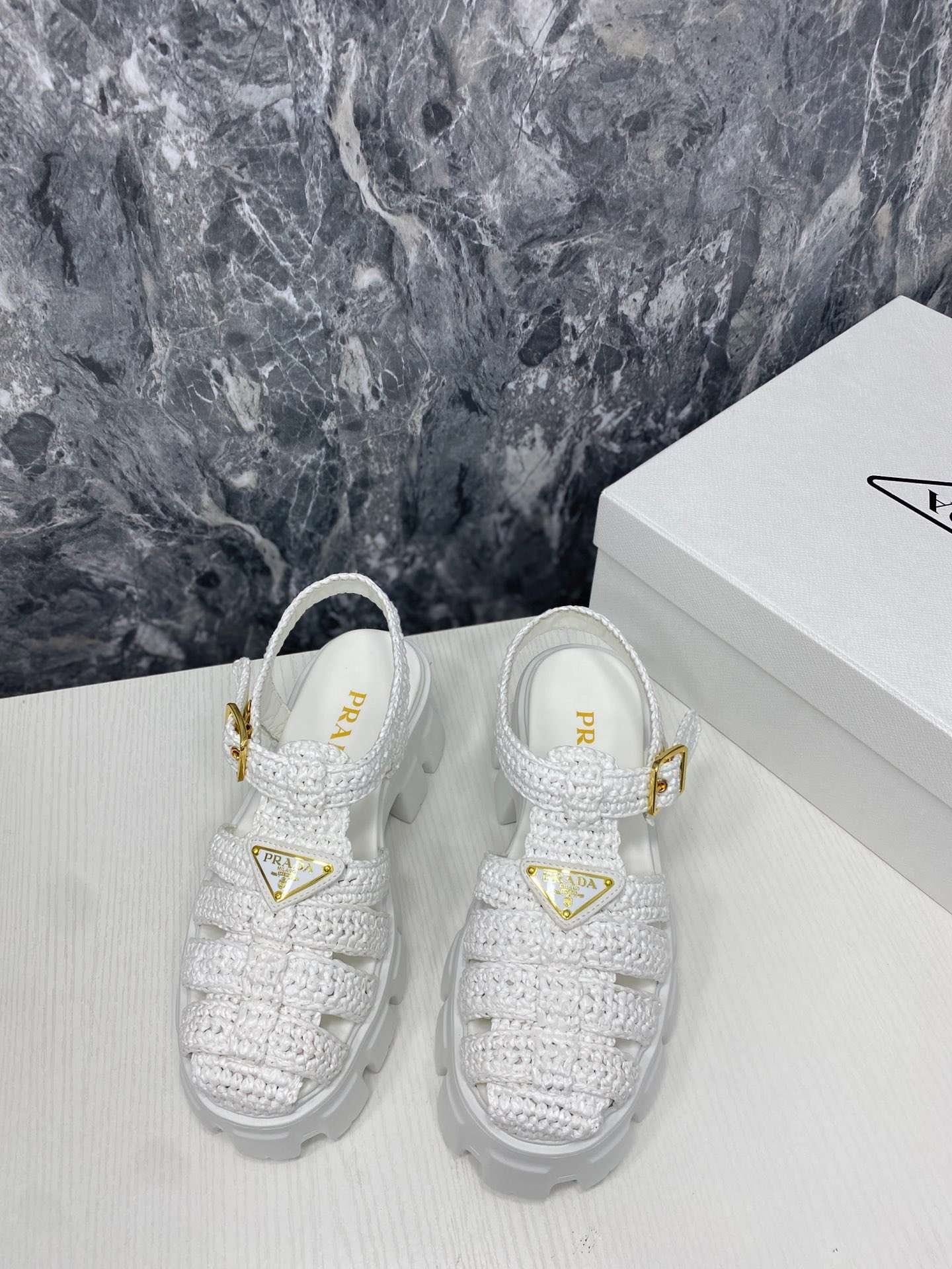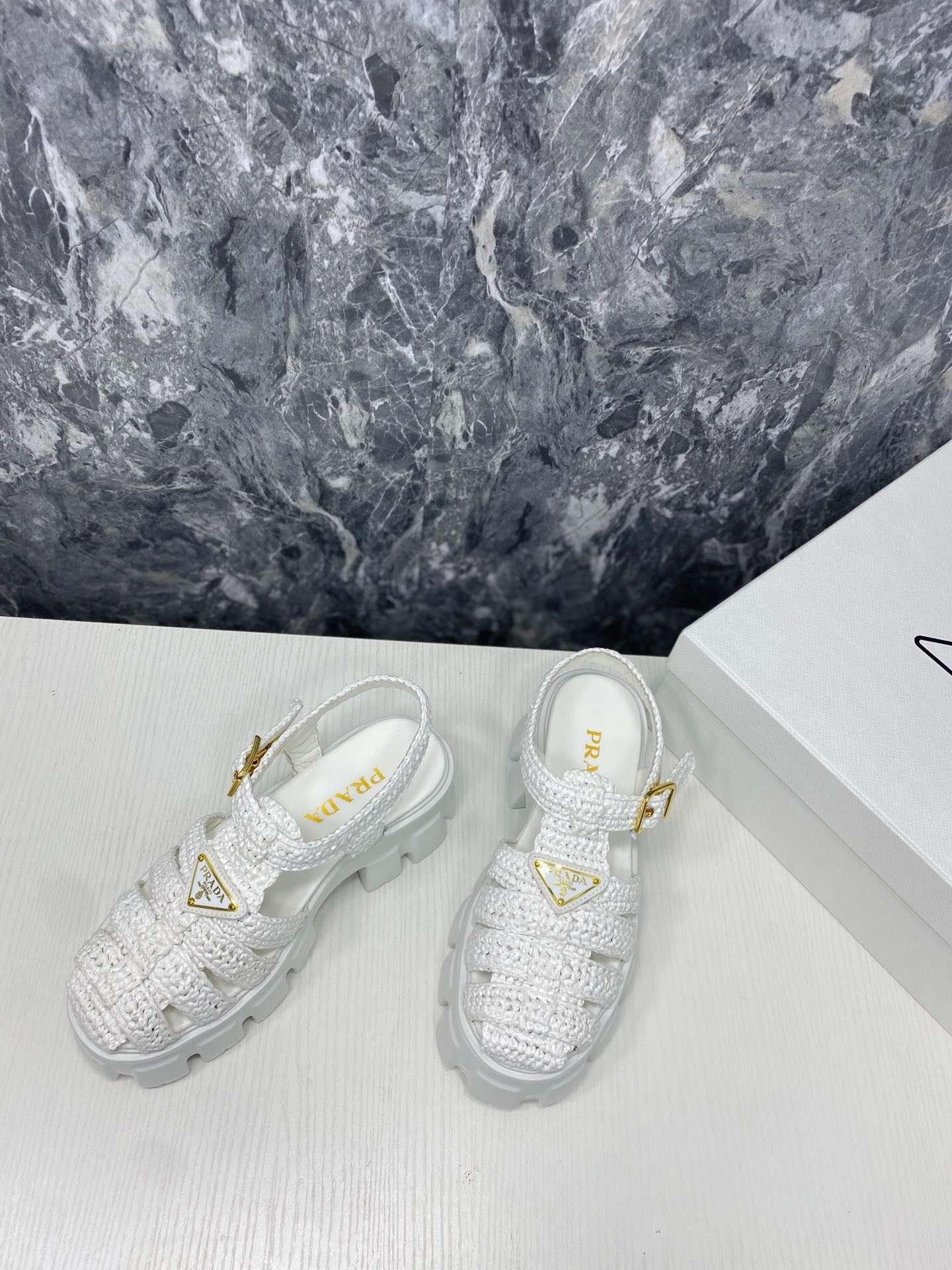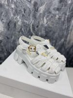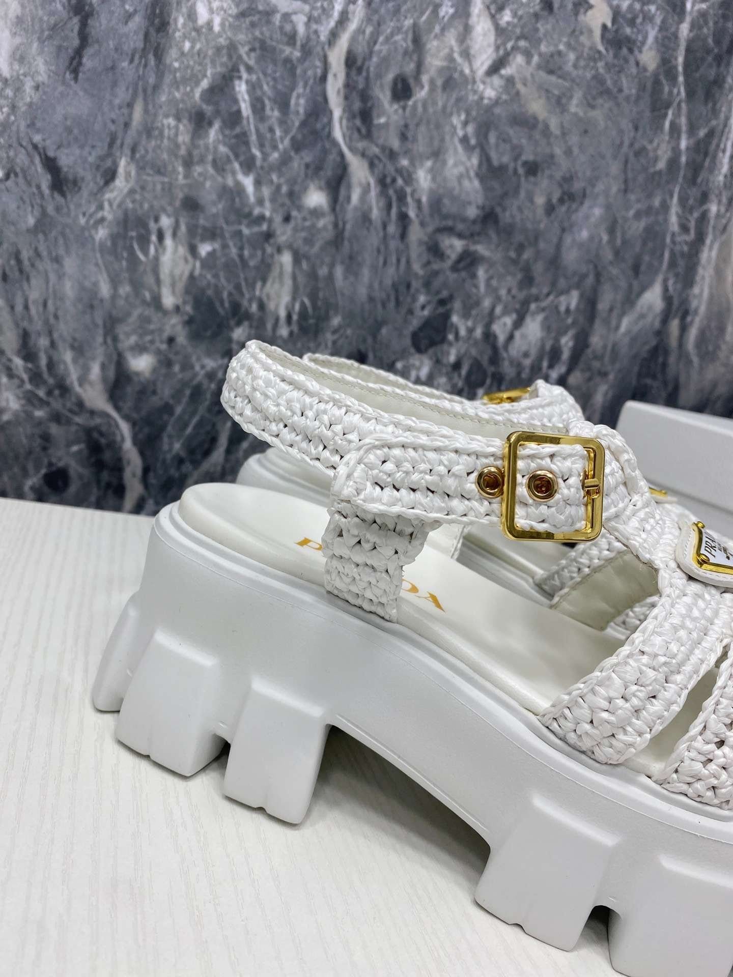 Prada Monolith 女式钩编笼凉鞋白色