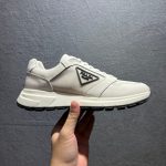 这款 Prada PRAX 01 运动鞋采用运动设计,采用 Re-Nylon Gabardine 制成,Re-Nylon Gabardine 是一种由回收、纯化制成的再生纱线海洋中收集的塑料垃圾、渔网和纺织废纤维。鞋面饰有缝线和标志性压花橡胶三角形徽标。鞋底具有独特的几何花纹。