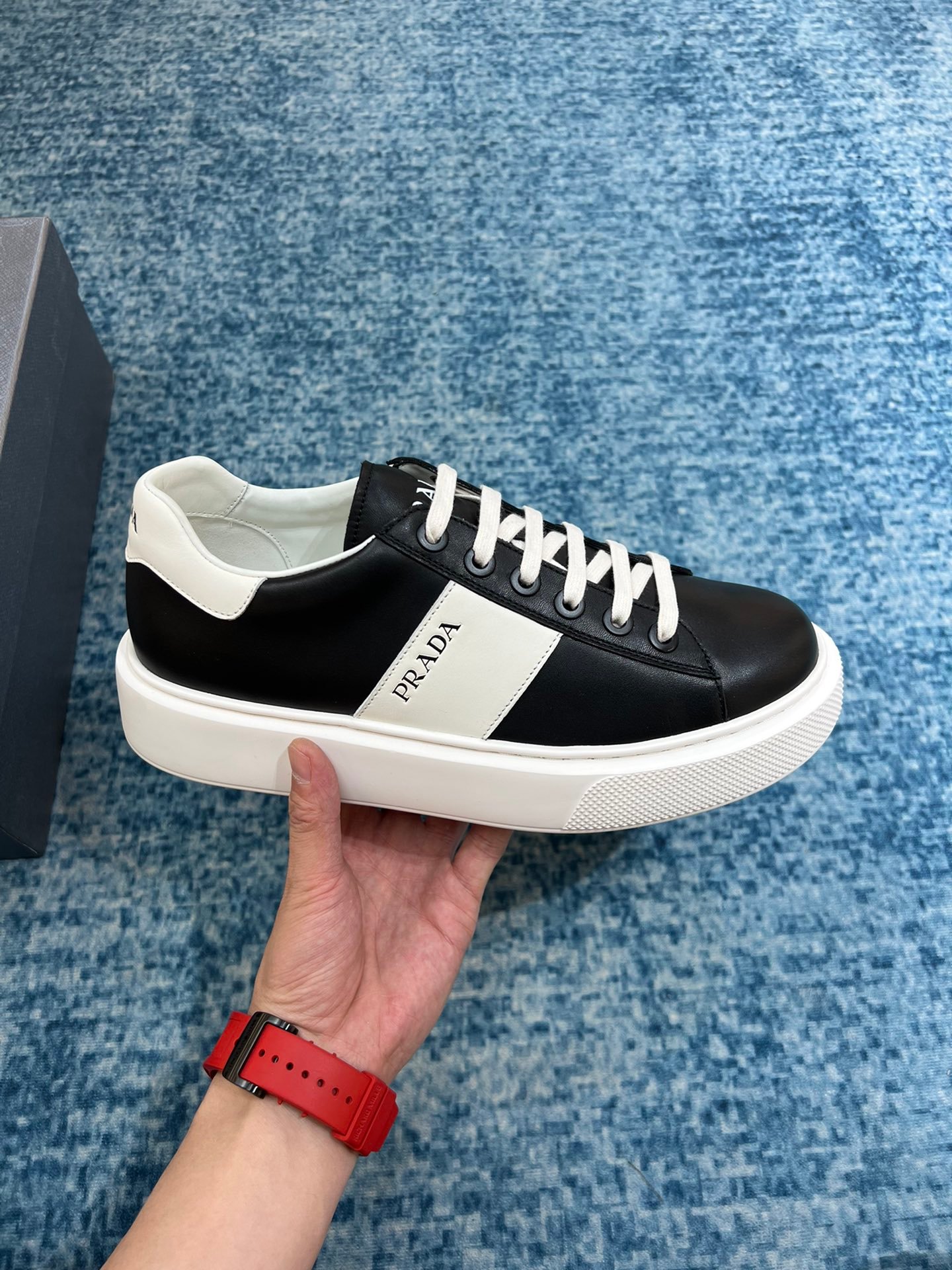 Prada Prax 01 男士黑色运动鞋 1.6 英寸/40 毫米 PRD