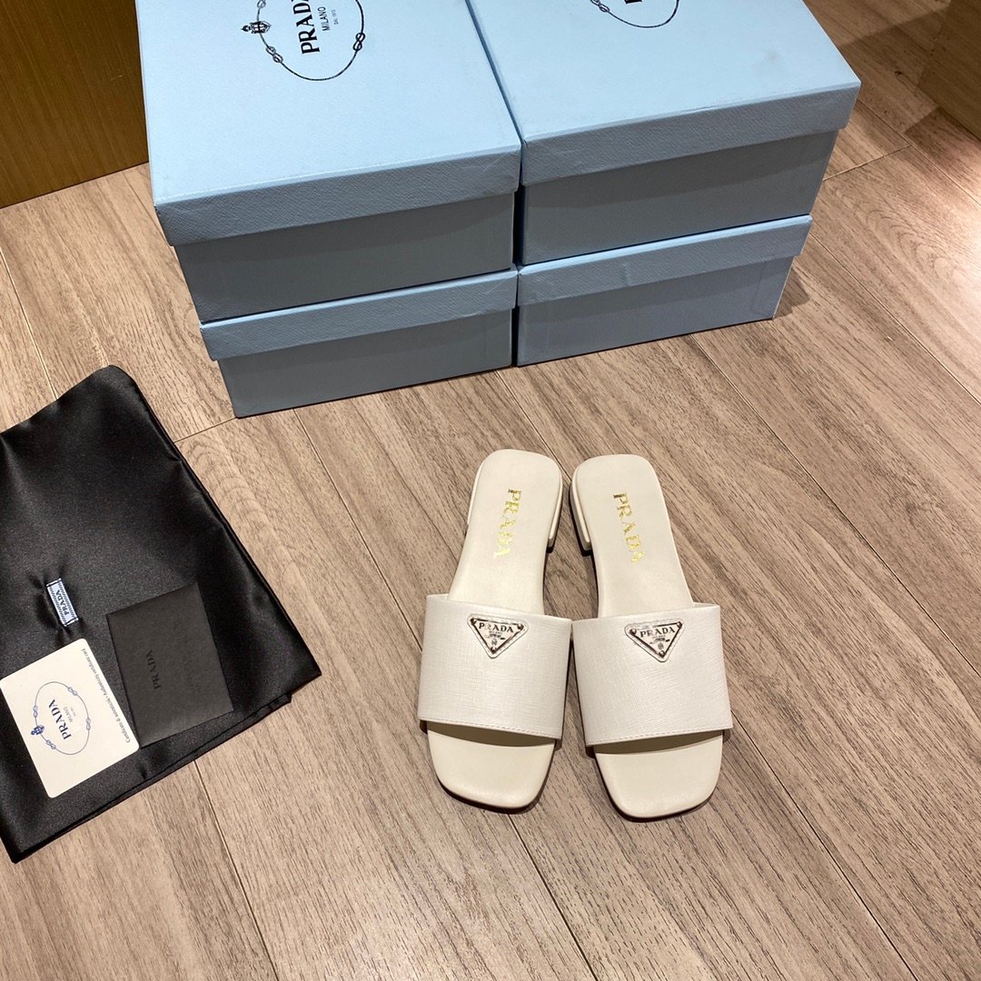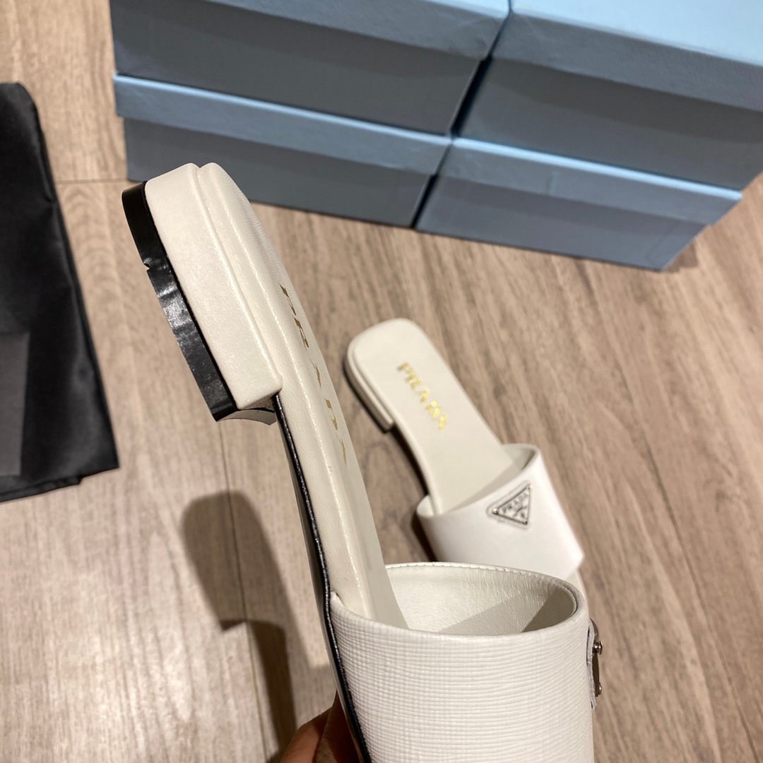 Prada Saffiano 女式拖鞋 白色 0.4 英寸/10 毫米 PRD 1XX627_053_F0009_F_010