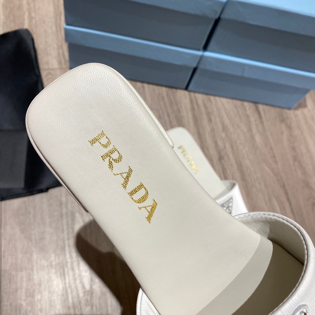 Prada 女式 Saffiano 白色拖鞋 0.4 英寸/10 毫米 PRD 1XX627_053_F0009_F_010