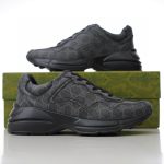 这款运动鞋采用厚底和笨重结构设计,带有复古风格的 Gucci 徽标,灵感源自 1980 年代的印花。