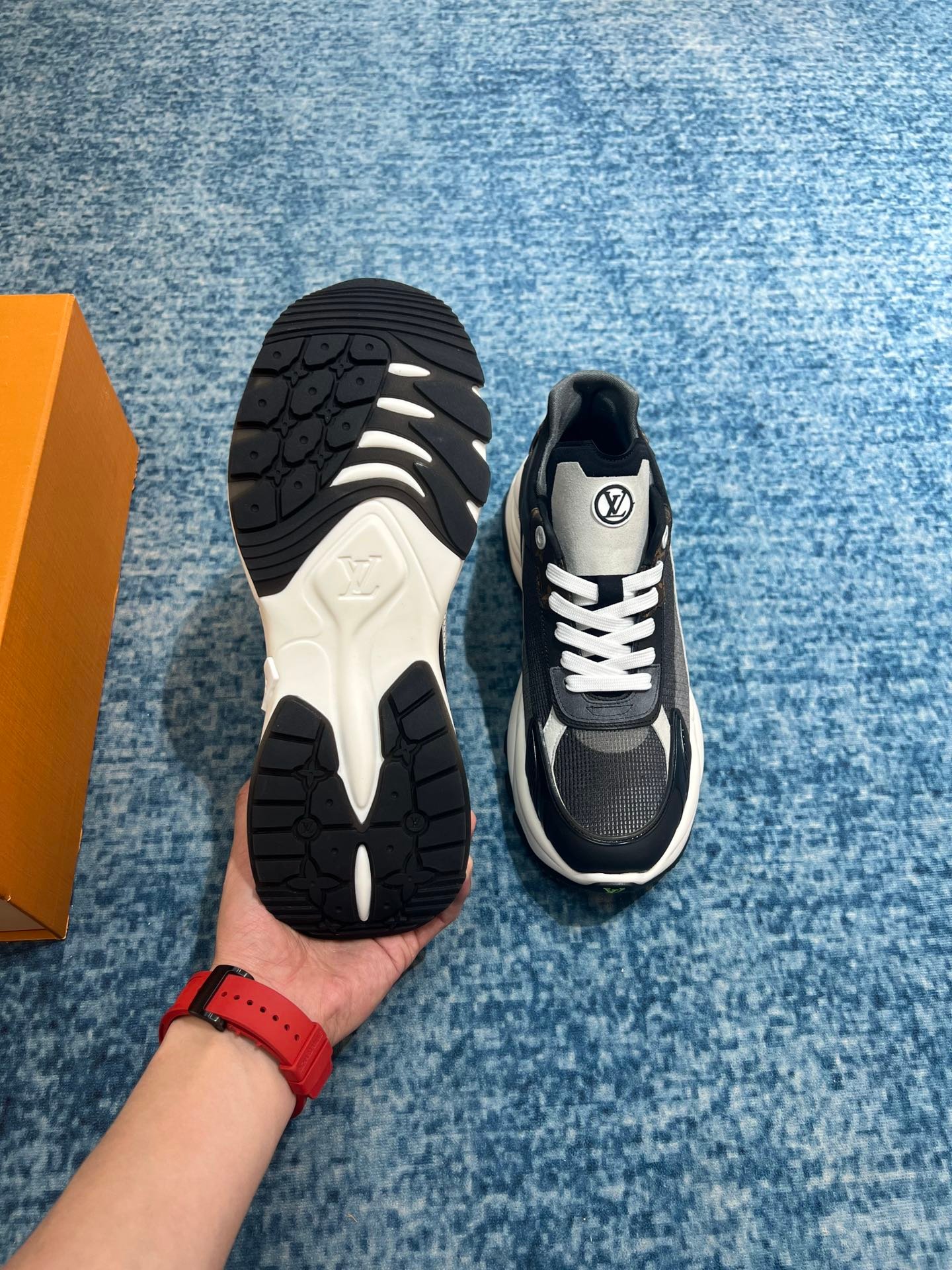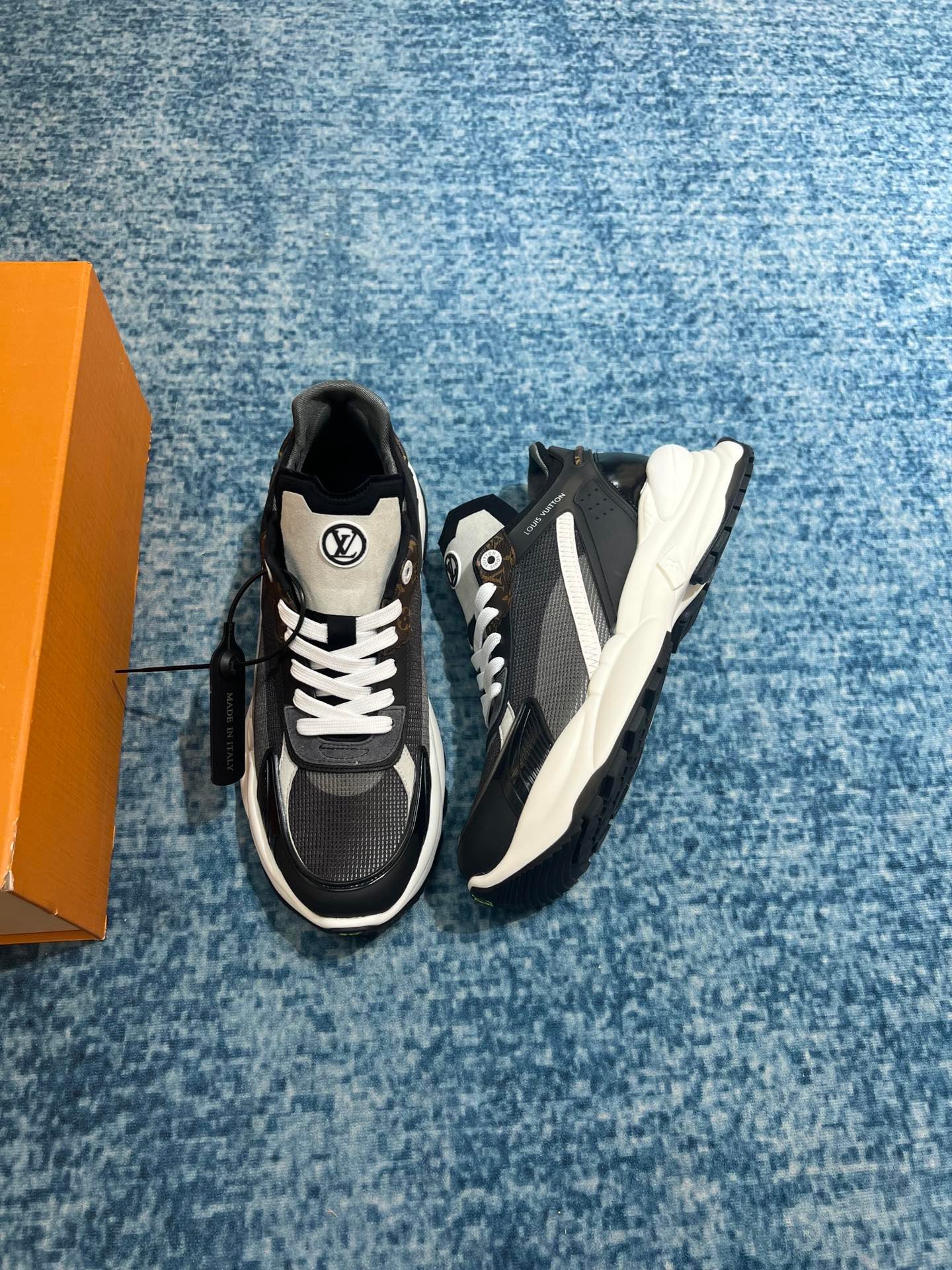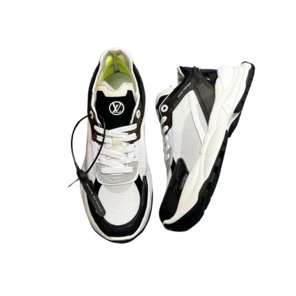 Run 55 运动鞋的灵感来自于赛车服,其特点是其凸起的橡胶外底,提供最佳的舒适度和弹力。该版本采用科技网布等多种材料制成,金属金色饰边平衡了运动美感。该款式以其许多标志性细节而闻名,包括背面的 Monogram 帆布带子。