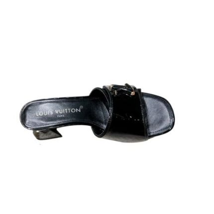 Shake mule 的醒目设计以金属色凸显。该款式的特点是 V 形粗跟和宽前带,饰有镶嵌水晶的 LV 配饰,灵感源自 Twist 包袋的搭扣。它配有外底,鞋垫上有超大的 Louis Vuitton 标志。