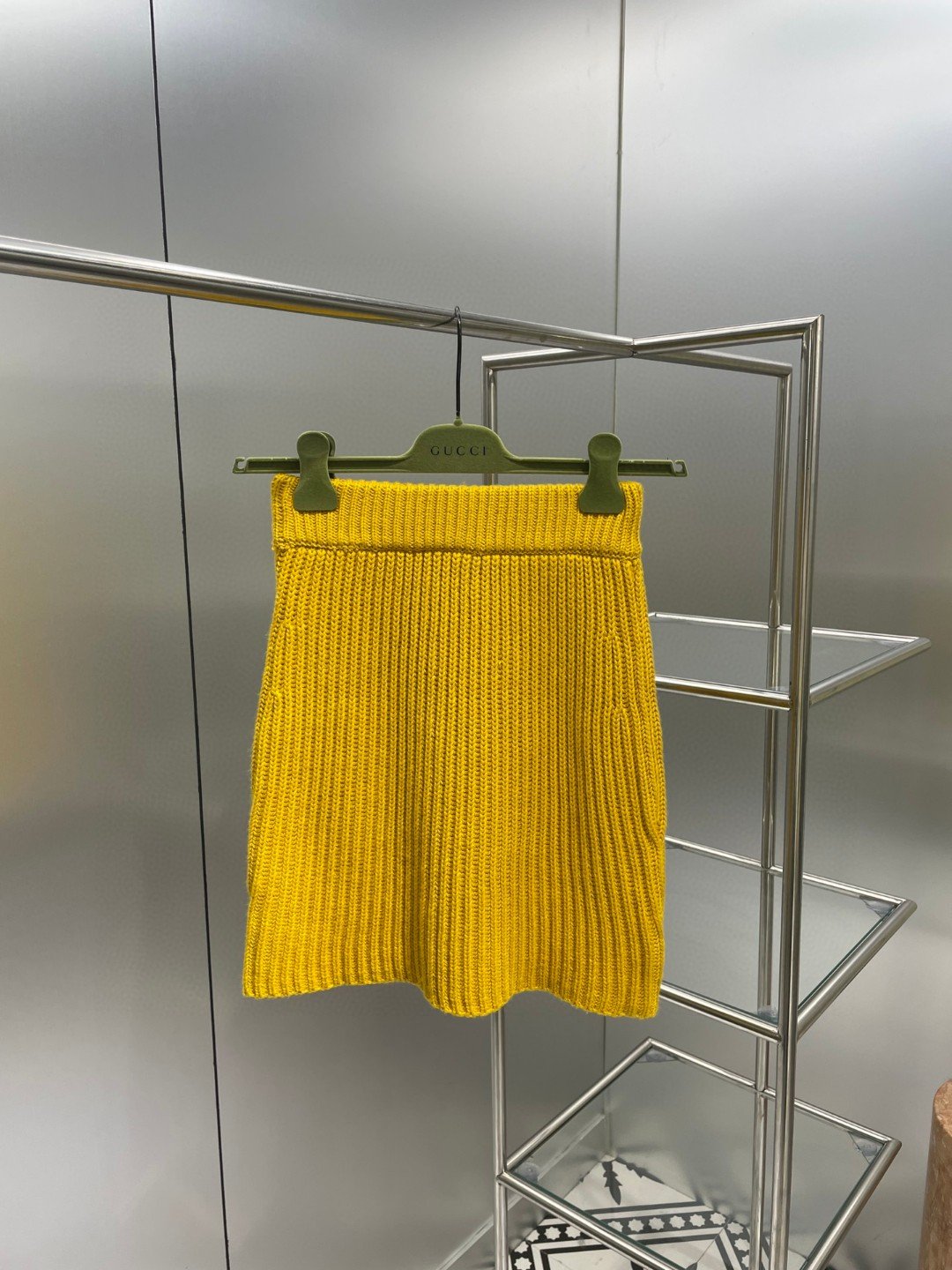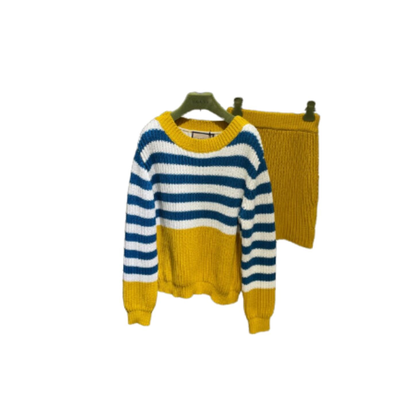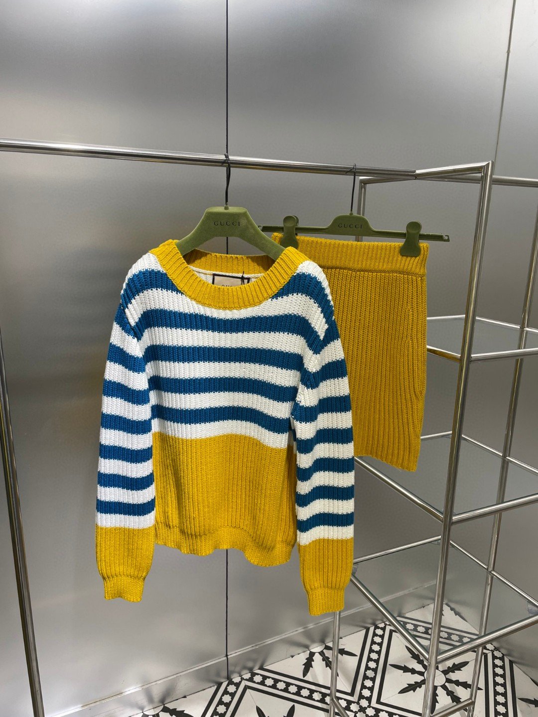 Gucci Simple Horizontal Stripe Top And Skirt Yellow