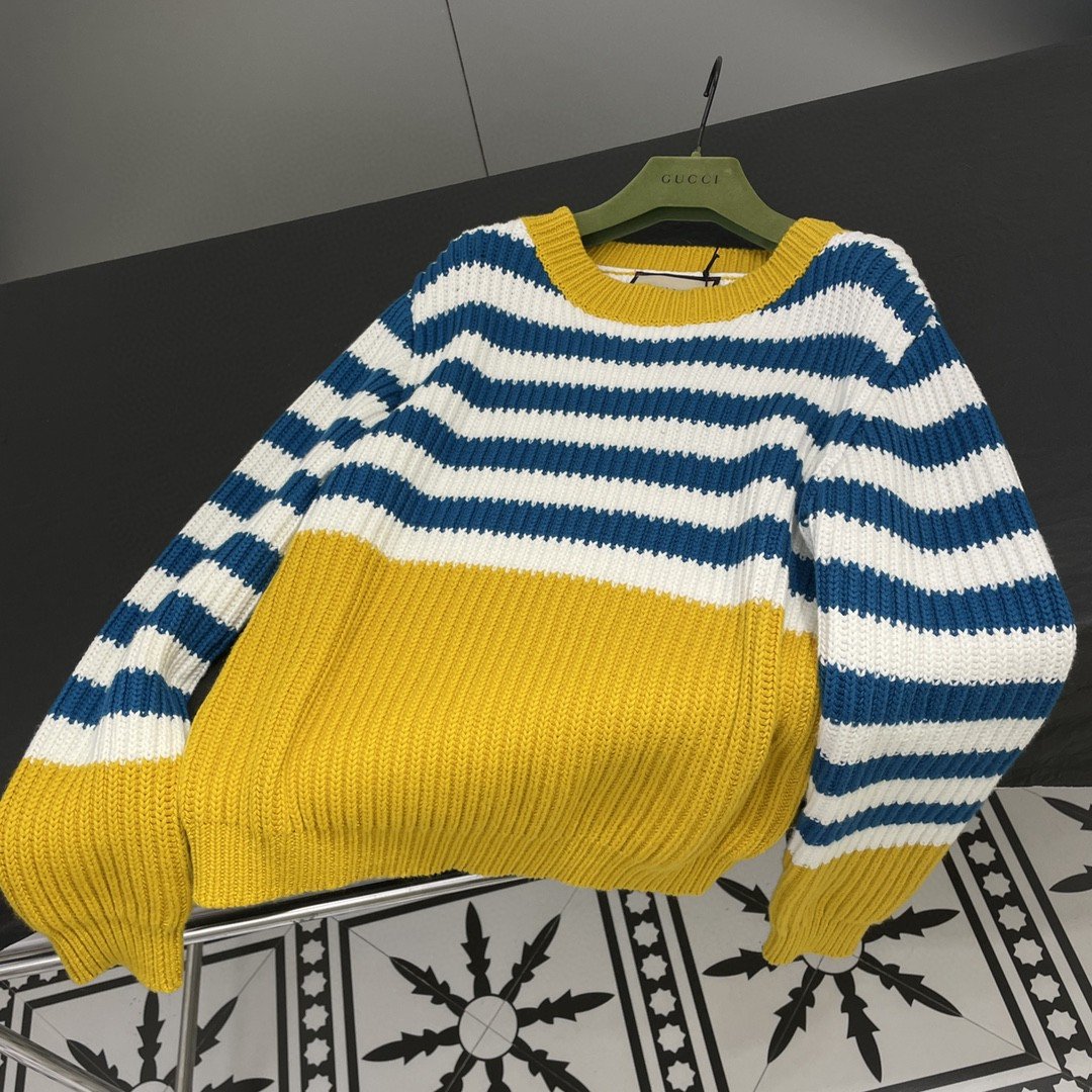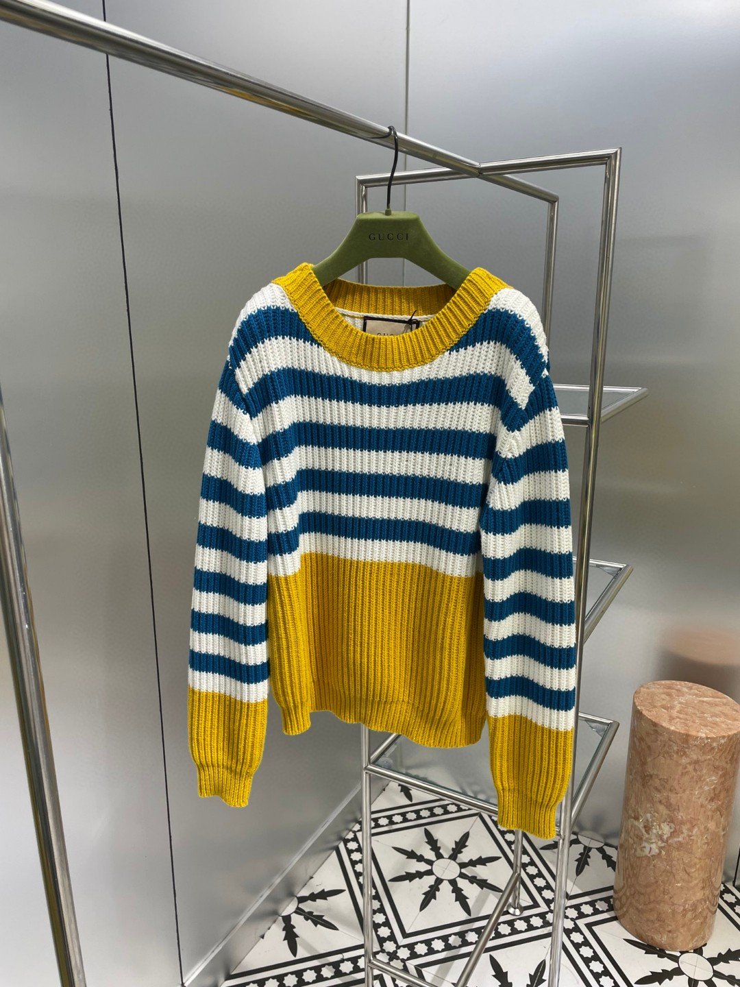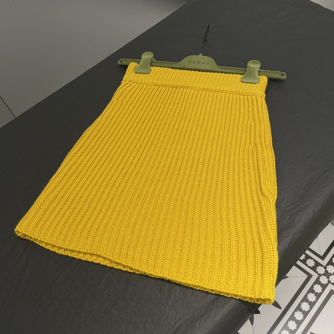 Gucci Simple Horizontal Stripe Top And Skirt Yellow
