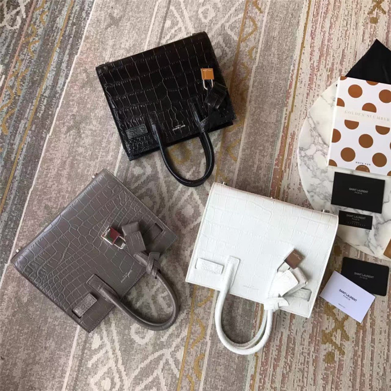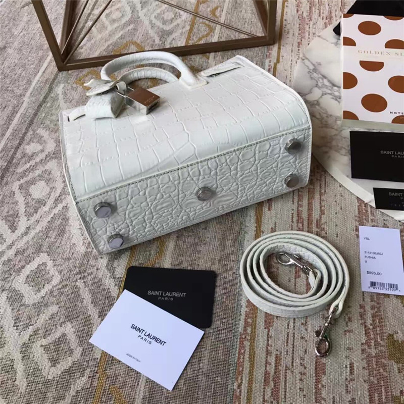 • SL0010 YSL女包 SLP经典款Sac de jour鳄鱼纹风琴包 圣罗兰2017年新款手提包 白色