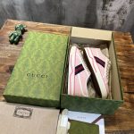 灰白色棉质低帮运动鞋。该款式融合了品牌传统的不同元素,例如 Gucci Tennis 1977 标签、鞋底纹理 GG 图案以及品牌织带细节,让人回想起品牌与运动和休闲世界的联系。