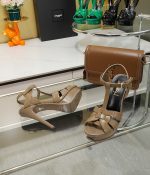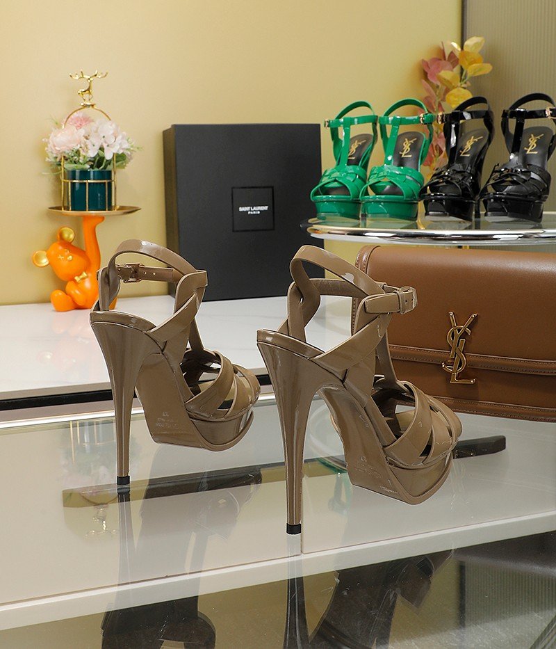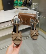 Saint Laurent Tribute 漆棕色防水台凉鞋