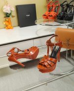 Saint Laurent Tribute 漆棕色防水台凉鞋
