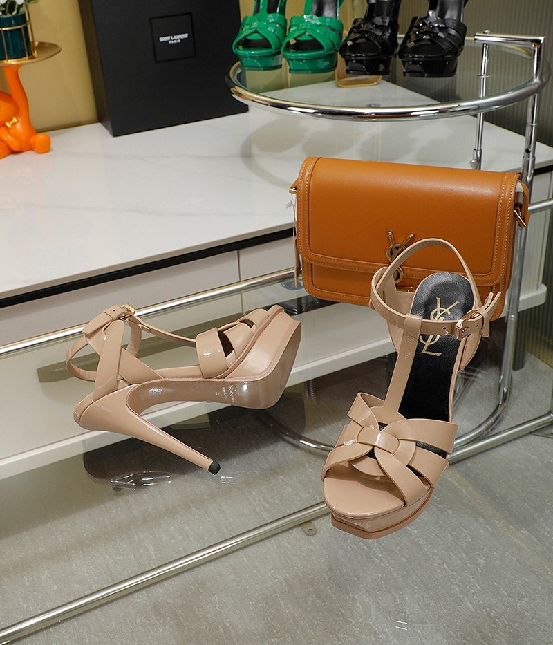 Saint Laurent Tribute 米色厚底凉鞋