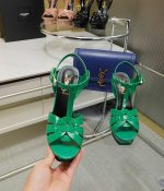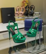 Saint Laurent Tribute 漆绿色厚底凉鞋