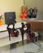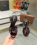 Saint Laurent Tribute 酒红色漆皮厚底凉鞋