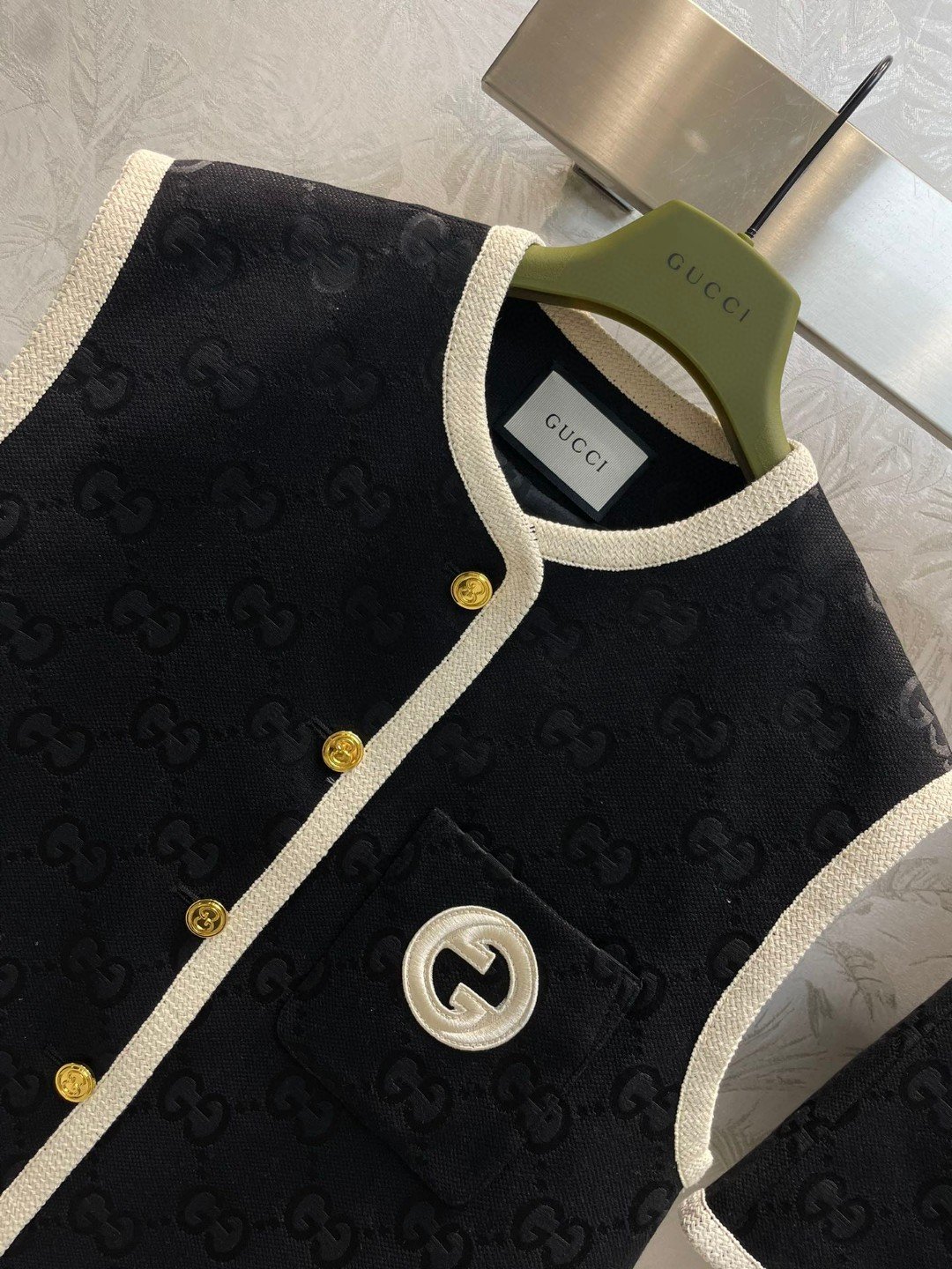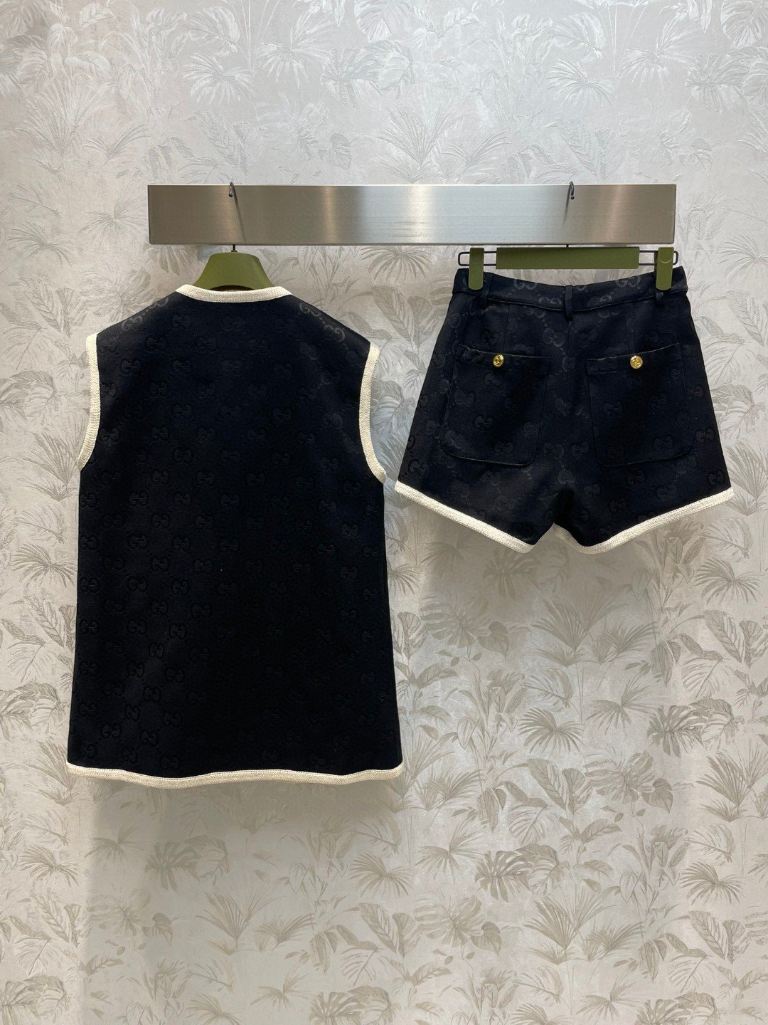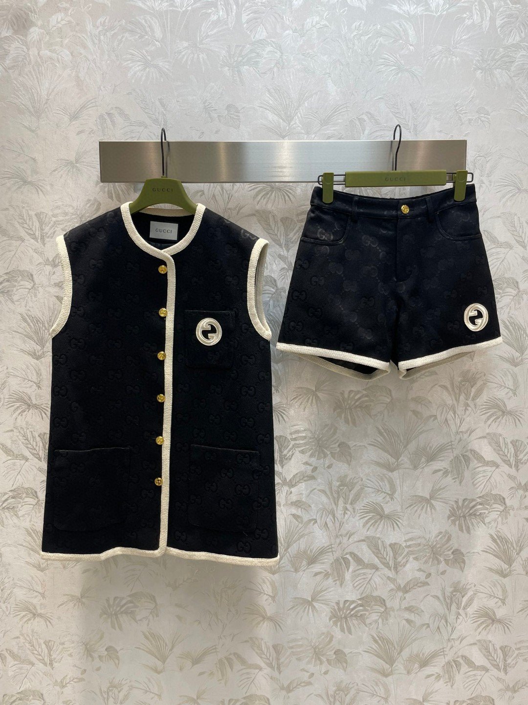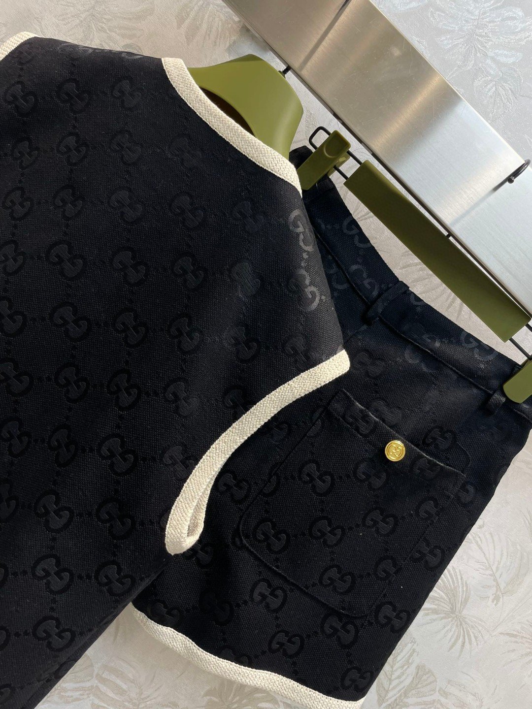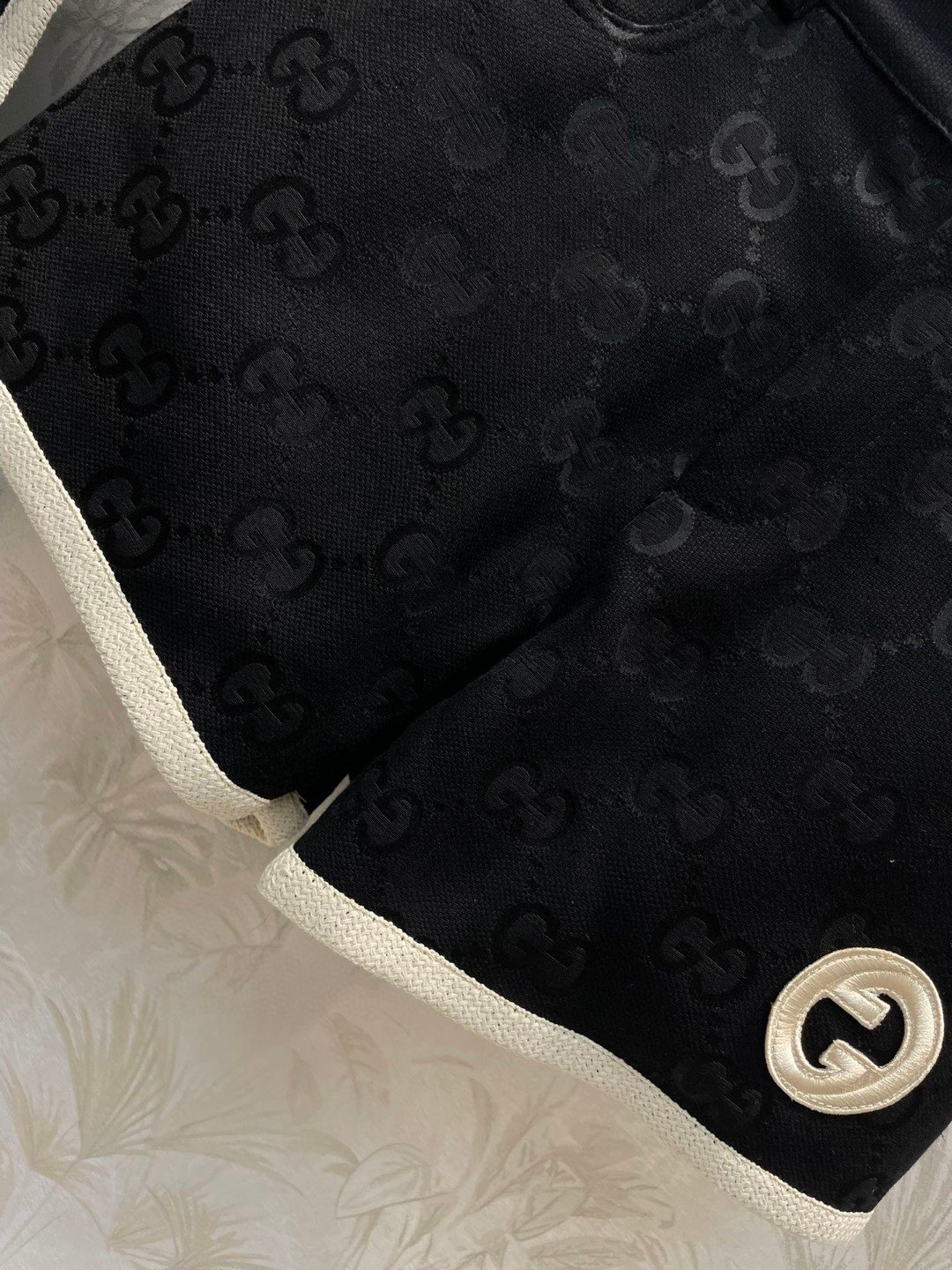 Gucci White Border Top And Shorts Black