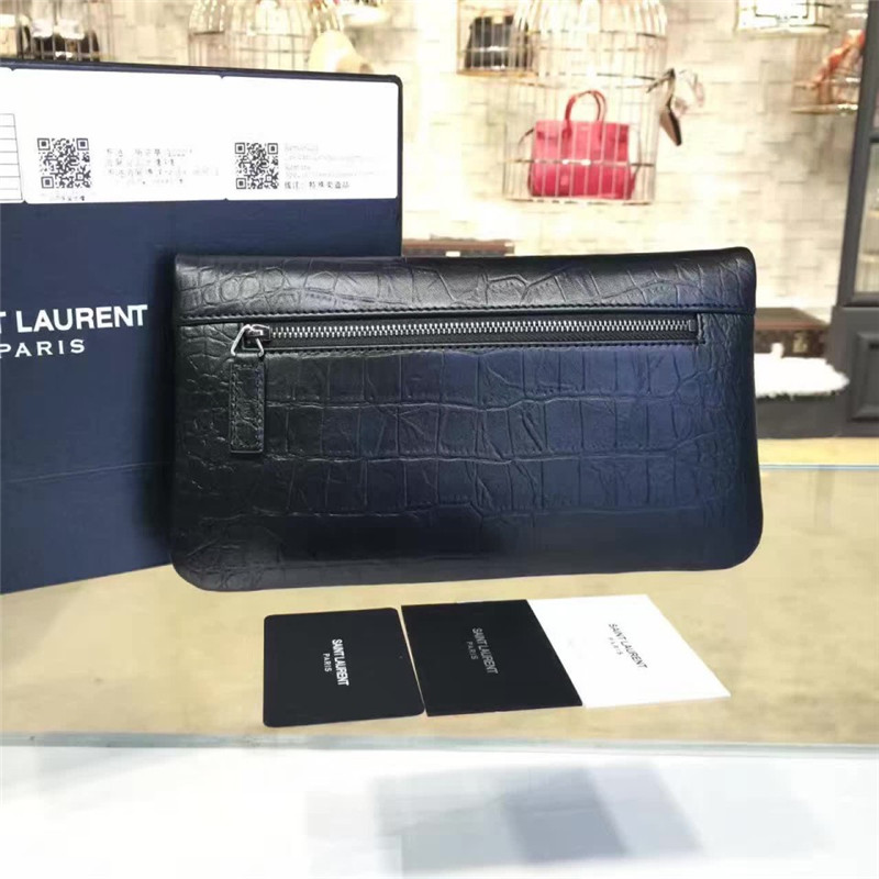 YSL手包 SLP官网2017新款手拿包 圣罗兰原单女士鳄鱼纹晚装包