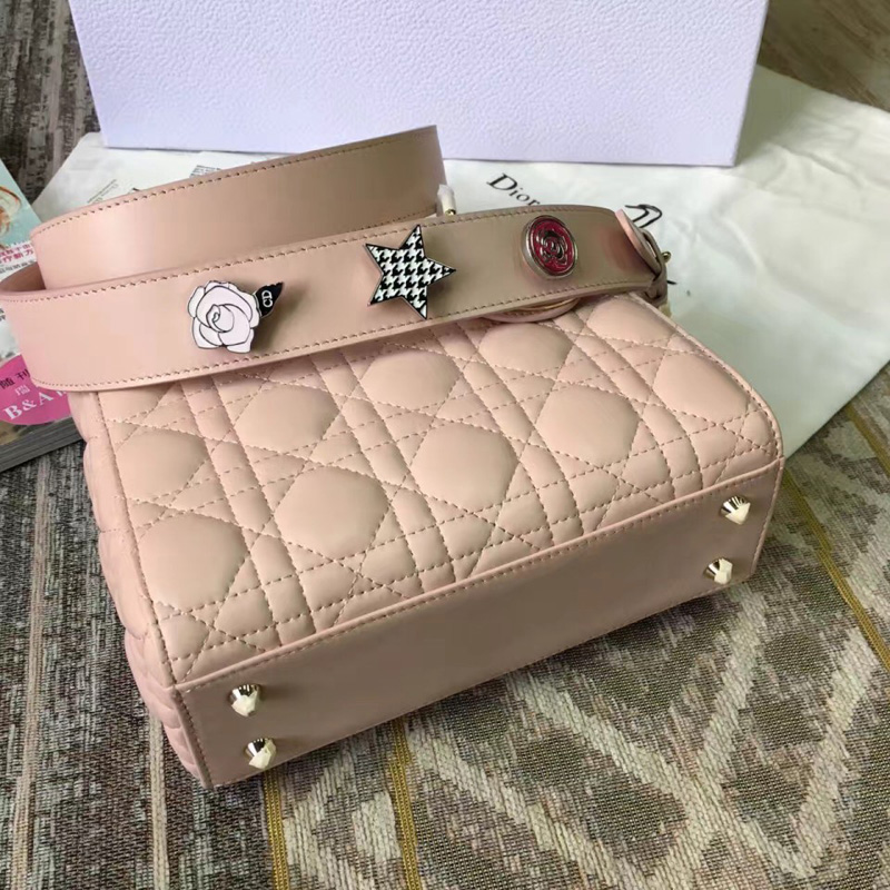 M0532OCAL M413 Dior LADY DIOR小羊皮手提包 新款徽章戴妃包 浅粉