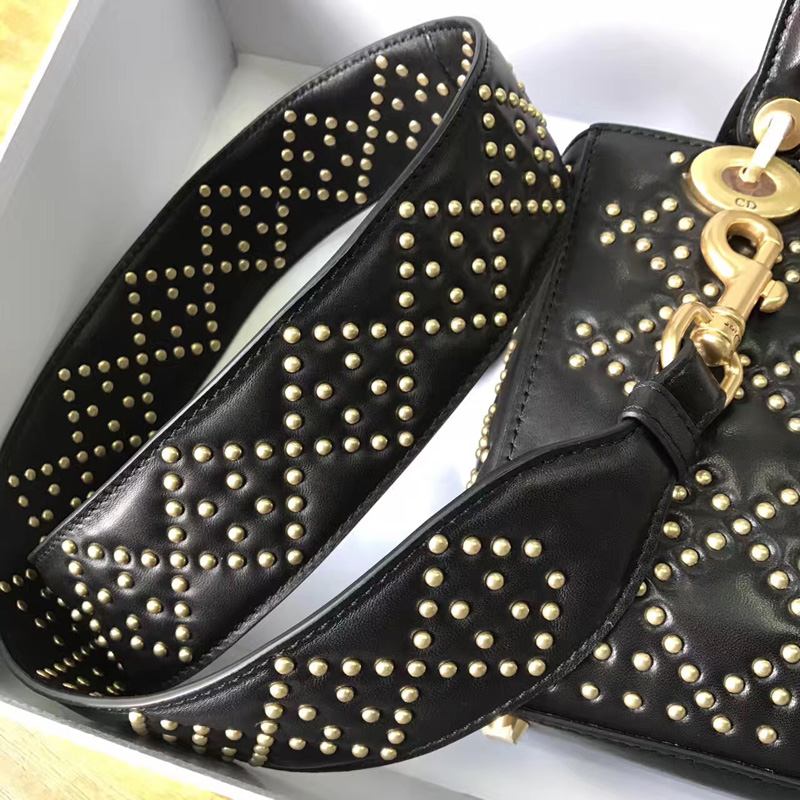 - M0579 Dior迪奥 LADY DIOR黑色小牛皮柔软手提包 饰钉手提单肩包
