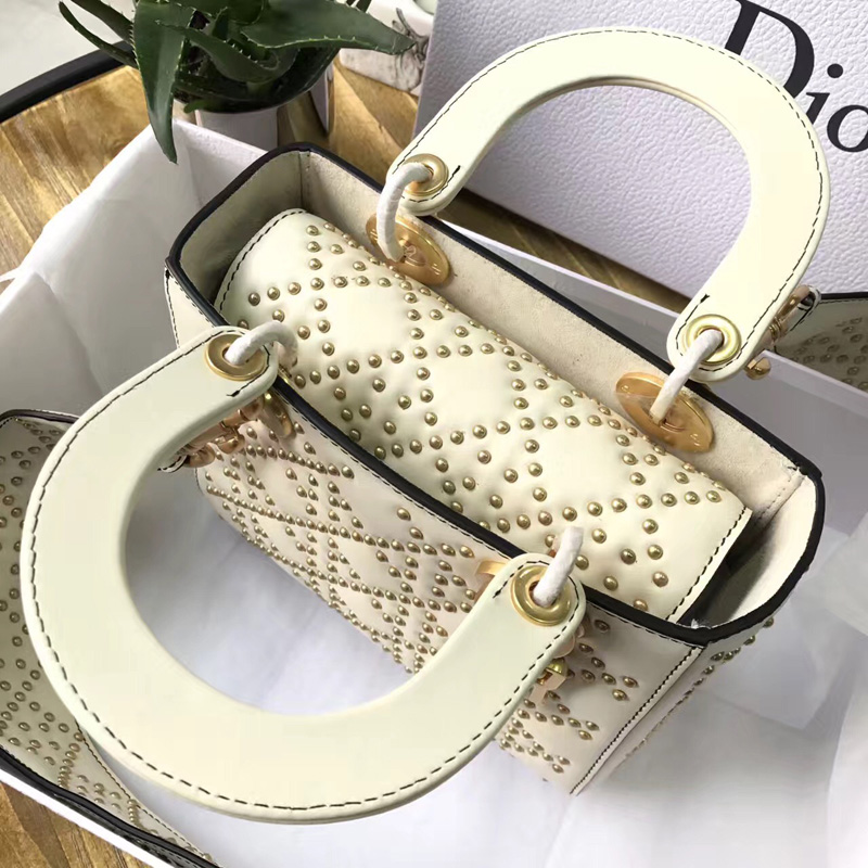 - M0579 Dior迪奥 LADY DIOR原色小牛皮柔软手提包 饰钉手提单肩包