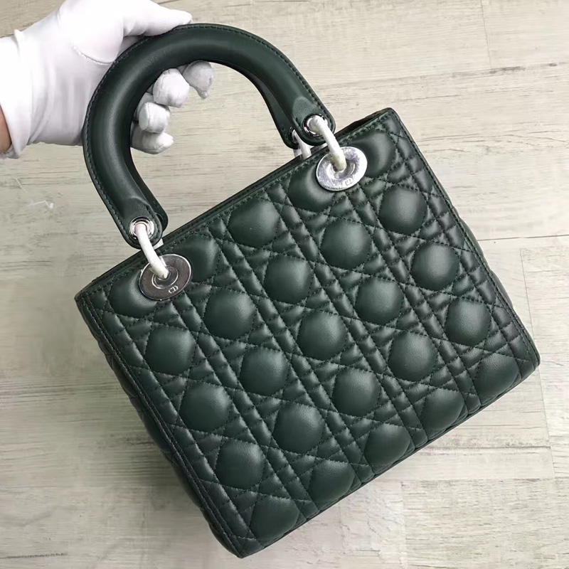 - Dior迪奥 Lady Dior 经典戴妃包 五格 绿墨色羊皮 金 小号