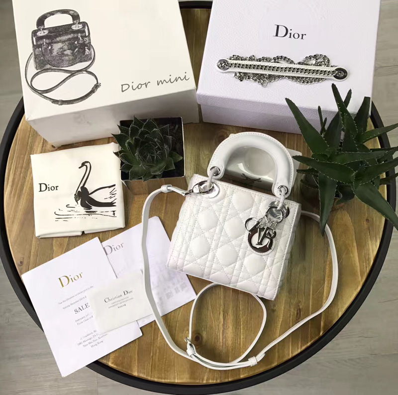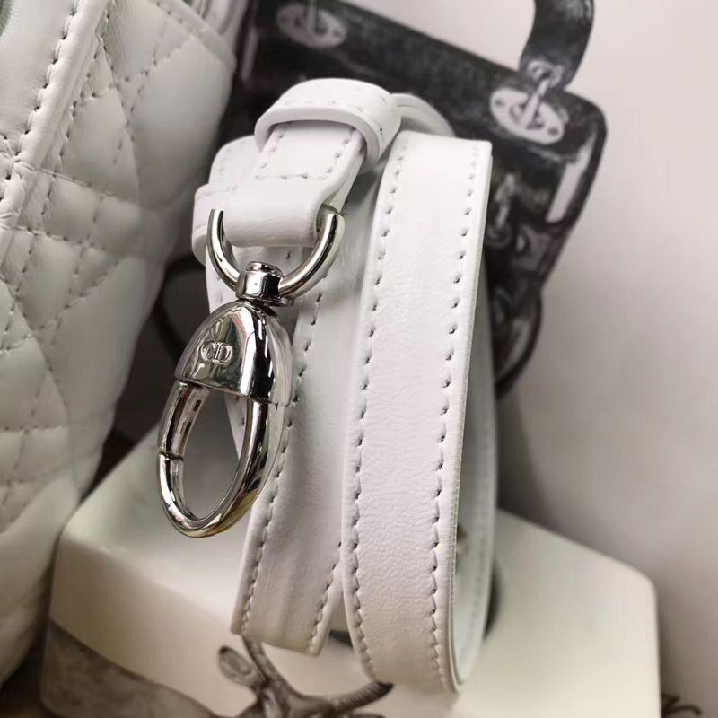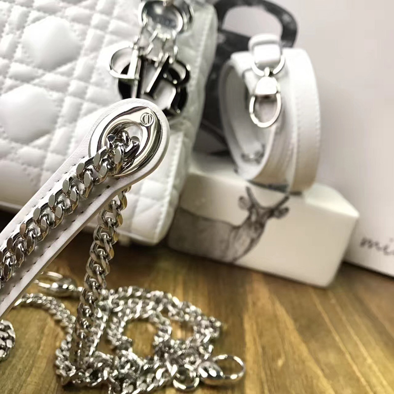 - Dior迪奥 Lady Dior 经典迪奥戴妃包 三格 白色羊皮 Dior链条包 银扣