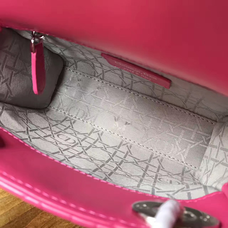 - Dior迪奥 Lady Dior 经典迪奥戴妃包 三格 玫红色羊皮 Dior链条包 银扣