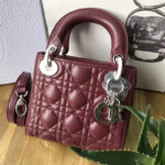 - Dior迪奥 Lady Dior 经典迪奥戴妃包 Mini三格 酒红羊皮 Dior链条包 银扣