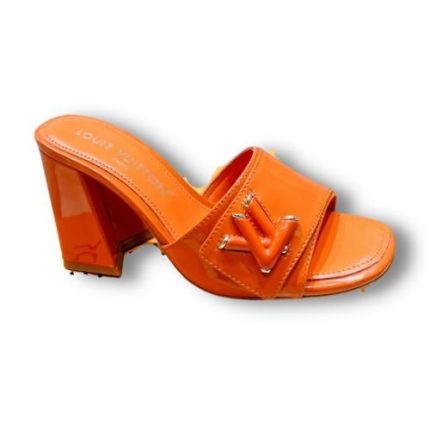 Shake mule 的醒目设计以金属色凸显。该款式的特点是 V 形粗跟和宽前带,饰有镶嵌水晶的 LV 配饰,灵感源自 Twist 包袋的搭扣。它配有外底,鞋垫上有超大的 Louis Vuitton 标志。